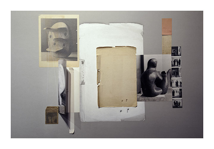 A good part of the material comes from the archives of Jose Gómez-Sicre. Martínez-Cañas' father, art dealer Jose Martínez-Cañas, acquired the archives as a present for his daughter. In the text of the catalog, Manuel E. González acknowledges the guiding role of that material, and reveals that the process of immersion in the archives was a central part of the artist's process. Furthermore, González delved into the fascination that Gomez-Sicre felt for Henry Moore, and Martínez-Cañas "renovated" Moore's sense of what is possible." Images of Moore's sculptures appear in several works from the series including Untitled 006. But the first ten pieces give priority to the evocation of artists like Cundo Bermúdez or Mario Carreño, figures that were as familiar during her adolescence and formative years as they were central for the development of a narrative of the art from Cuba.