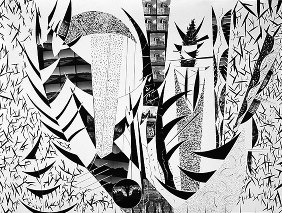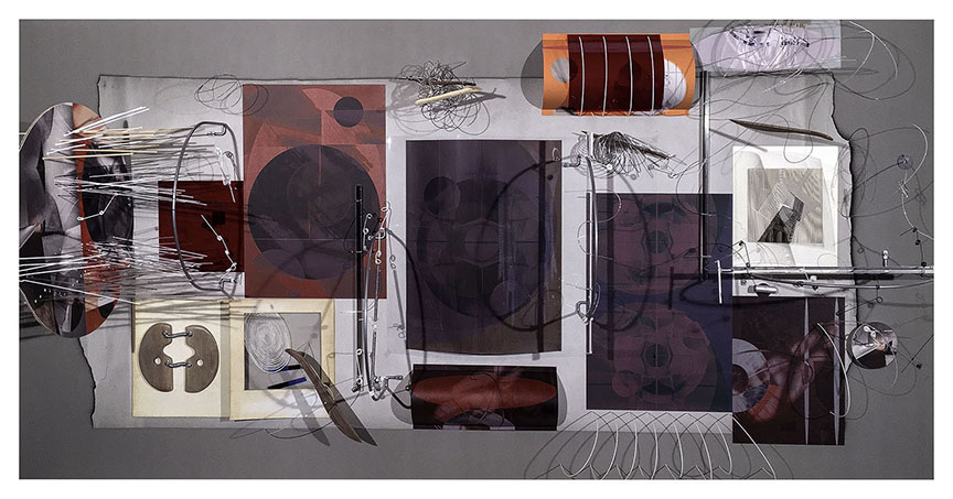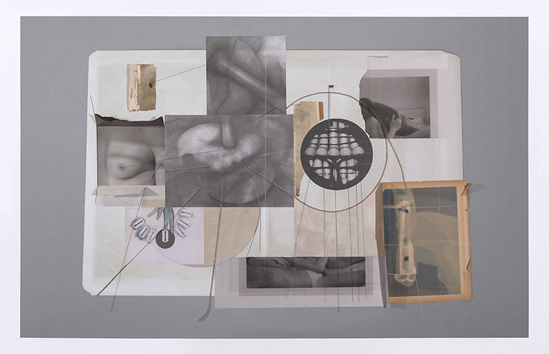 These first ten "Rebus + Diversions" - a term that in addition to evoking the divertimento and freedom with which the series was approached, also offers the possibility of multiplying the versions and the tacit allusion to the subversion of limits - are constructed with fragments from photographed papers: works, letters, exhibitions, as well as influences and events that were decisive for the art of the island. Beginning with the beautiful piece Untitled 011 - in which the home of Walter Gropius is intervened with a tree - forms created with balsa wood are introduced and three-dimensionality is increased with resources like cords and wires. The assembly with threads and forms in the erotic collage Untitled 012, a tribute to Agustín Fernández, is a beautiful allusion to the affective memory that connects biographical and art history elements. The last seven rebus increase the creative intensity, not only because of the type of referential appropriations and materials, but also as a result of the artistic bravado that places Martínez-Cañas in her role of favorite student of László Moholy-Nagy. It is as if, through her own artistic leap, Martínez-Cañas embodied the transformation that sparked the Hungarian teacher's influence and championing of the New Bauhaus in the art of North America. With this series, she has answered Moholy-Nagy's challenge to "think about the history of art and to reproduce old formulas and experiment with a vision that stretches the human ability to face new tasks."